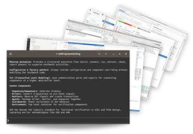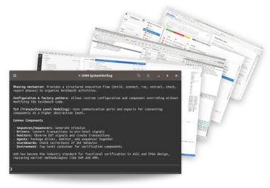 - Architectural exploration API/tools (design hierarchy, verification hierarchy, compiled files).